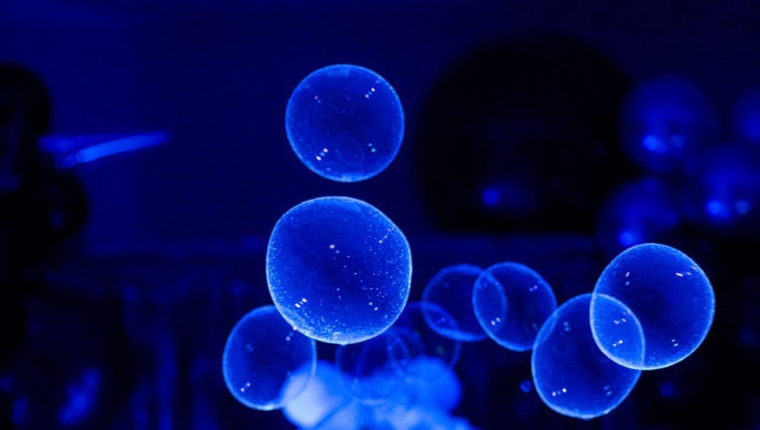 Ультрафіолетова лед лампа для неонового шоу мильних бульбашок.
