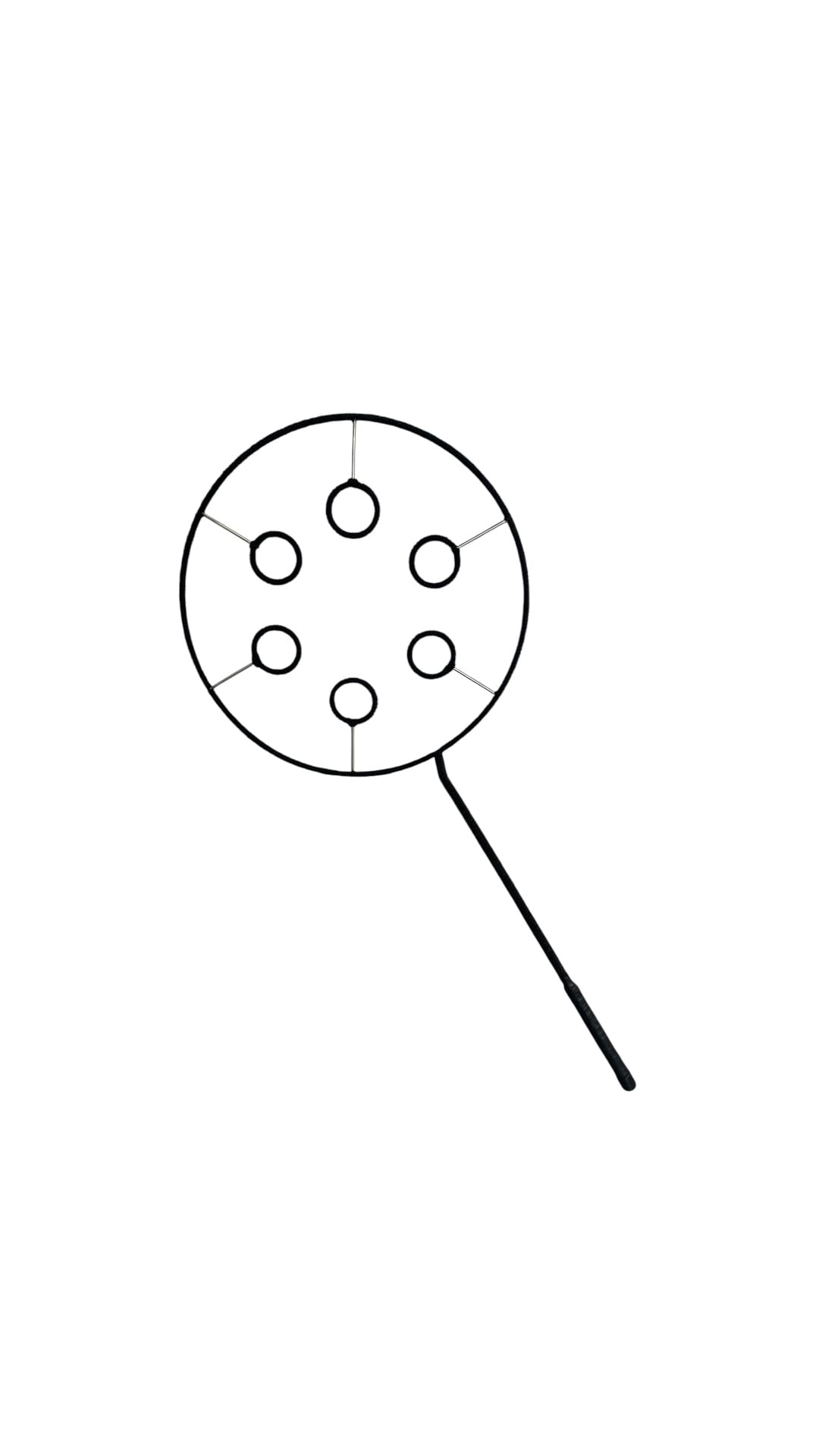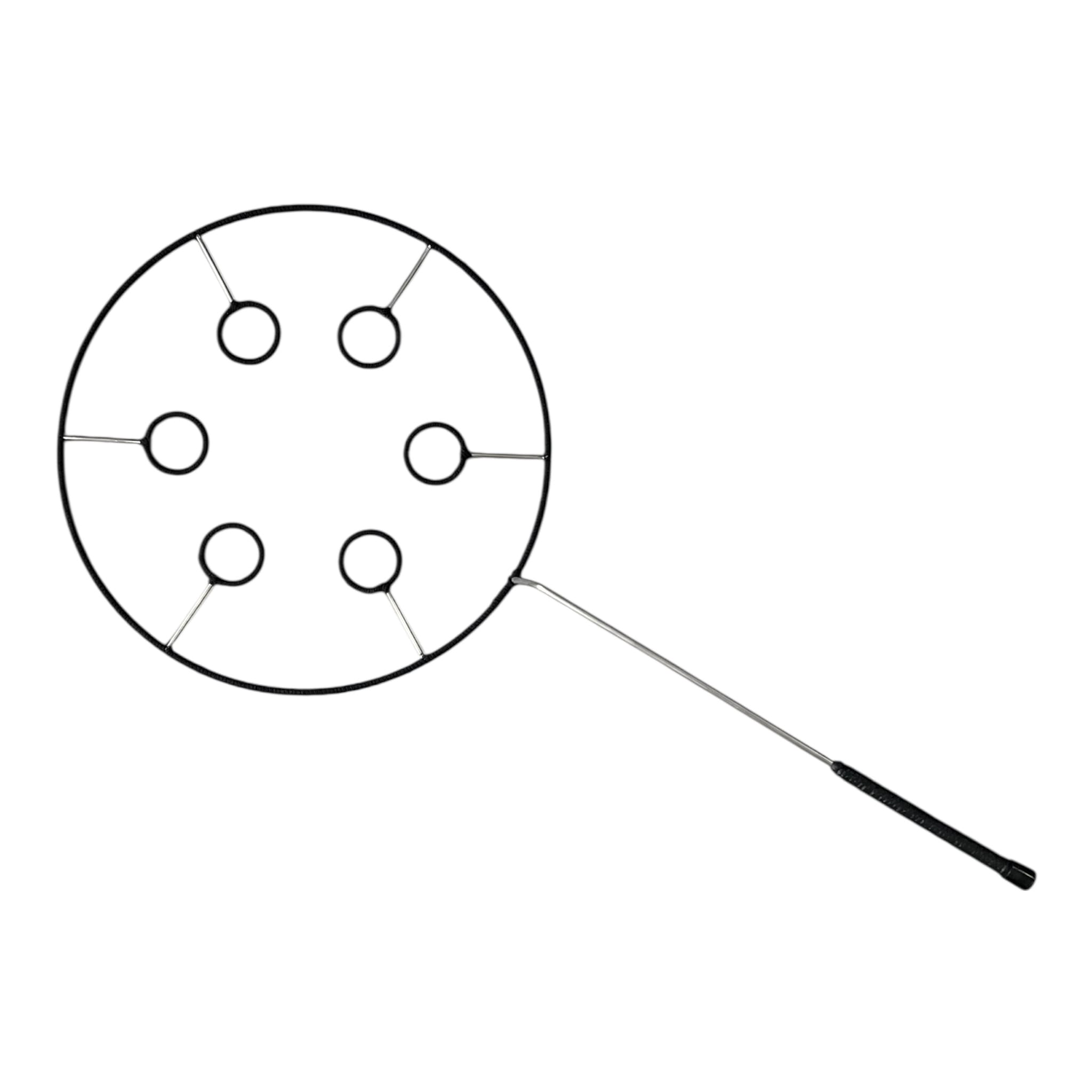 Її діаметр – 45 см, довжина ручки – 45 см. Оснащена шістьма кільцями по 6 см, що створюють ефектні бульбашки.